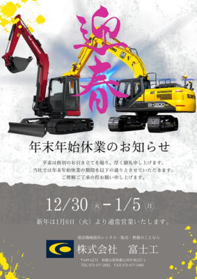 株式会社富士工は、昭和51年創業以来、建設機械、器具などの販売・レンタル・整備・点検を主たる業としてまいりました。